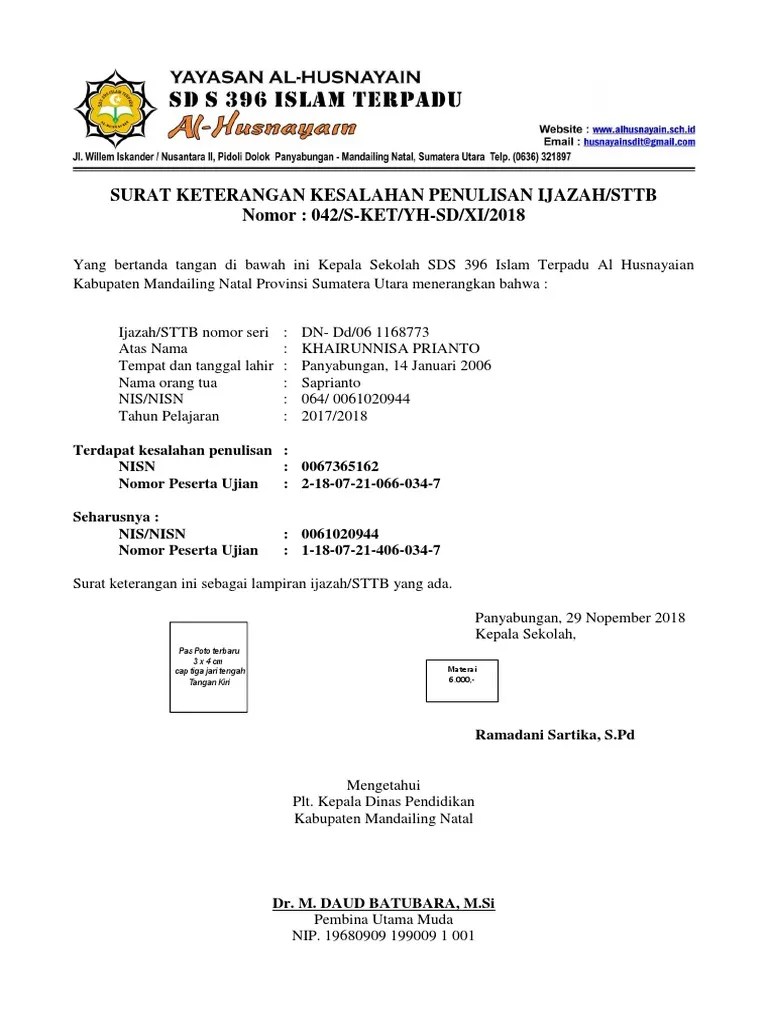 Contoh Surat Keterangan Kesalahan Penulisan Nisn Pada Ijazah / 16 Contoh Surat Pernyataan Kesalahan Lengkap Terbaru Contoh Surat - Surat keterangan kesalahan penulisan ijazah/sttb.